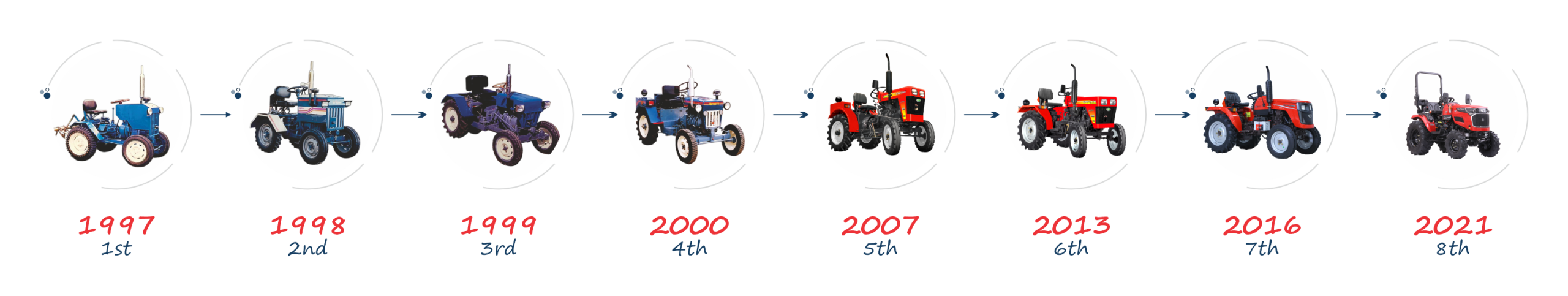 Since 1997, Captain Agri Machinery Exim LLP has consistently evolved through successive generations of innovation. Each new generation of tractors has brought advancements in technology, performance, and reliability reinforcing our commitment to empower farmers with the best machinery. From the pioneering 1st generation to the cutting-edge 8th generation in 2021, our journey reflects relentless dedication to quality, efficiency, and meeting the changing needs of agriculture worldwide.