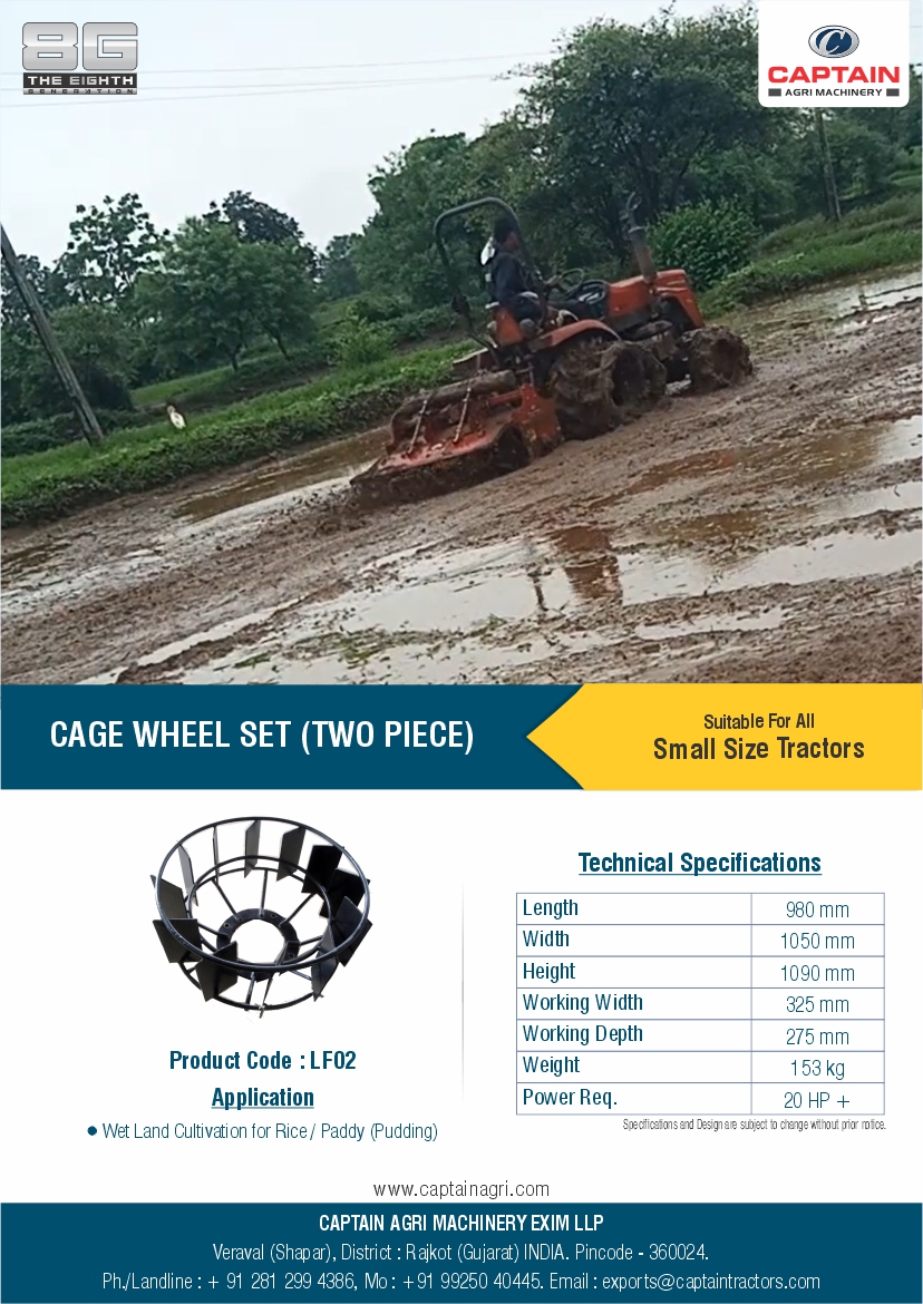 The Cage Wheel Set (Two Piece) is designed to provide strong traction and stability for tractors operating in wet, muddy, or loose soil conditions. Its open-lug design prevents slippage by gripping the soil firmly, making it ideal for puddling, tillage, and intercultural operations. The two-piece structure allows easy mounting, removal, and transport.