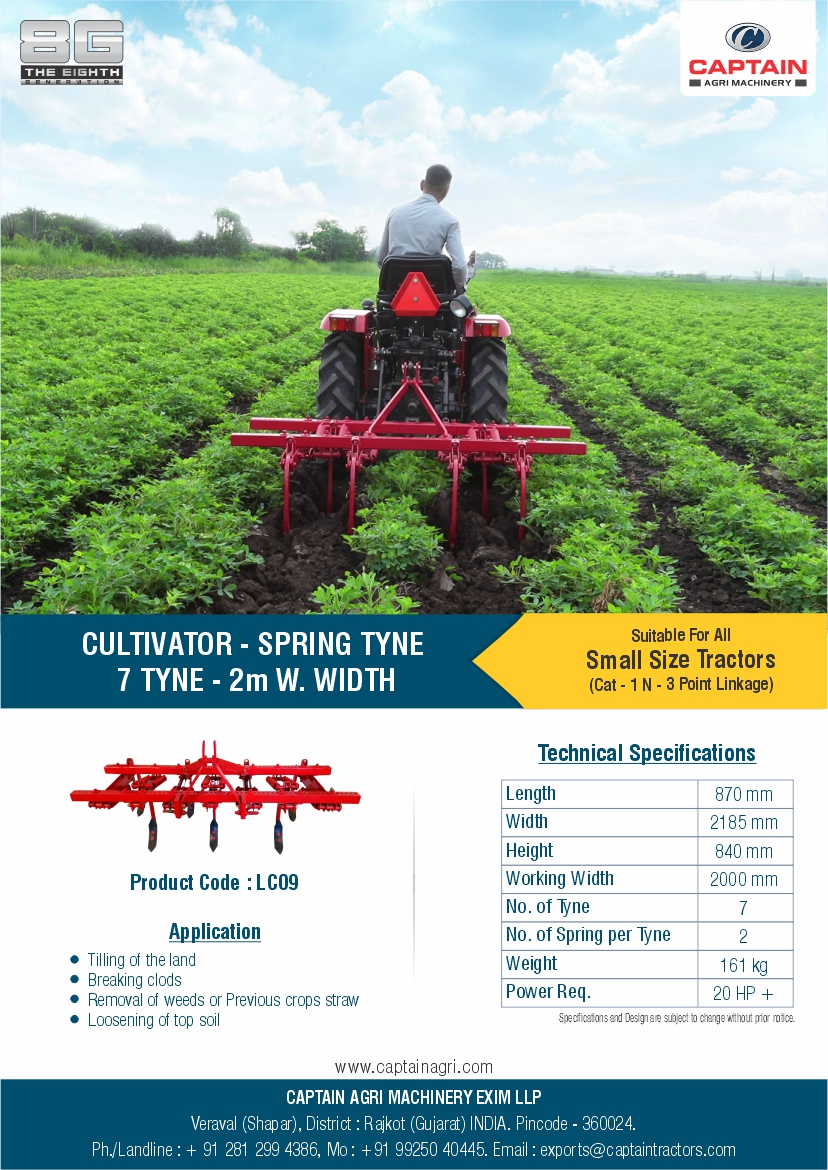 The Spring Tyne Cultivator is designed for efficient secondary tillage, soil aeration, and weed control. Its spring-loaded tynes provide flexibility to absorb shocks in hard and uneven soils, ensuring consistent depth and smooth operation. Ideal for preparing a fine seedbed and breaking clods while protecting the implement from damage.
