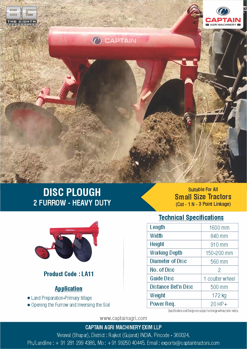 The Disc Plough is built for primary tillage in hard, dry, stony, or trash-filled soils where conventional ploughs cannot perform. Its notched or plain discs penetrate deeply, cut through residues, and turn the soil effectively, ensuring proper mixing and soil aeration. Ideal for burying trash, weeds, and green manure to enhance soil fertility.