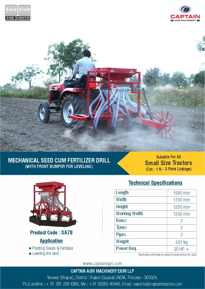 It is used for Planting Seeds & Fertilizer & Leveling the land.